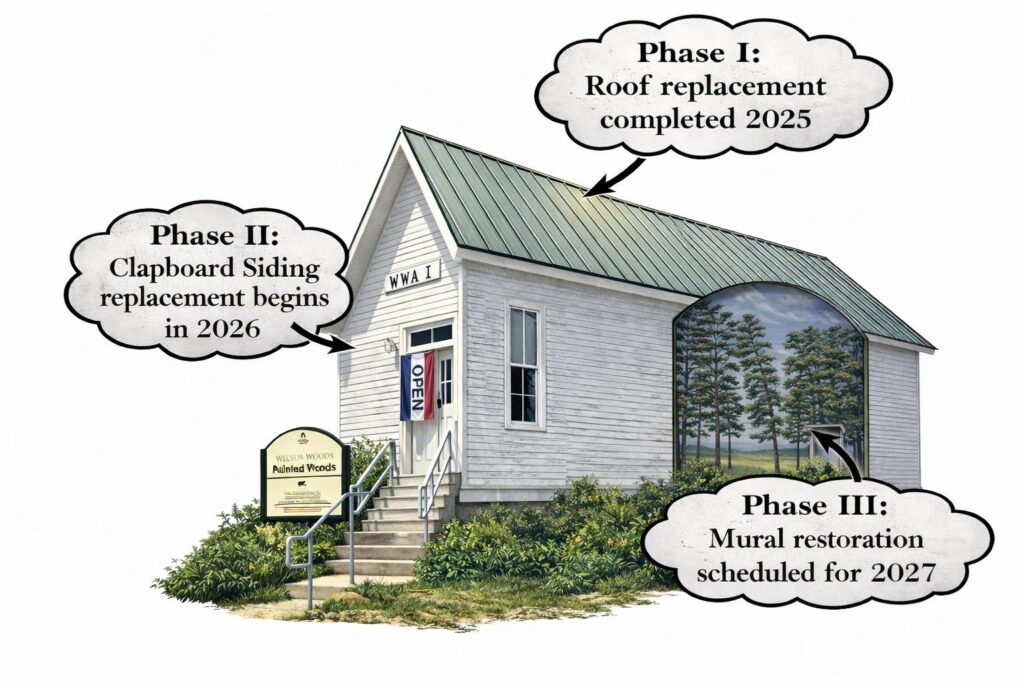 At the turn of the twentieth century, German immigrant artist Ernest Hüpeden quietly gave Valton’s MWA Camp 6190 Hall its lasting visual identity—though it wouldn’t be called the Painted Forest for another 60 years, when Delores Nash gave it the name we still use today.